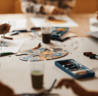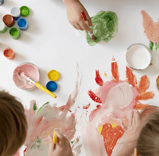 Kids will explore a wide range of materials—like poster paint, crayons, oil pastels, watercolor markers, clay, and natural items—using creative tools such as soft brushes, palette knives, and spray bottles.